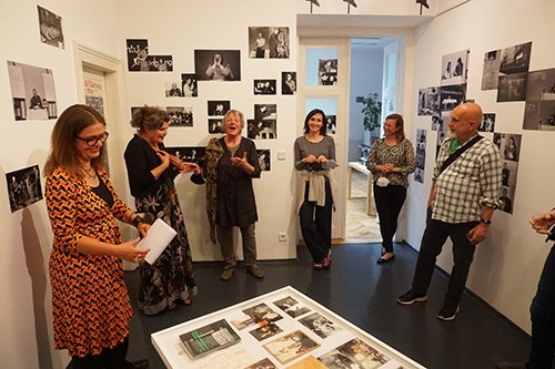 vernissage of tina bara's exhibition "founding fever" (gründungsfieber) with numerous photographs from the initial years of the vienna poetry school (by angelika krinzinger u.a.) ( sfd, 1070 vienna)