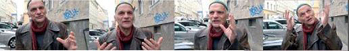 always and everywhere, fragments leave lose ends behind: yet they were already written into bara’s basic concept. the intention was not to make it into a question and answer game, nor into deskside interviews, but rather to capture hintze freely associating and speaking at locations that had an affinity with the sfd. stories “tell themselves”, anecdotes remind one of images and dauntless name-dropping connects idols, comrades and companions into a cluster of ‘oral history’ and the ‘po­etic act’, just the way h.c. artmann would have liked it. a few names? allen ginsberg, anne waldman, christian loidl, friederike mayröcker, henri chopin, falco, blixa bargeld ...