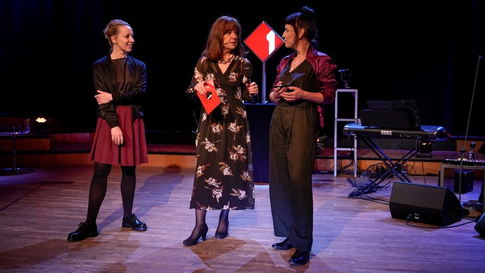 kollektiv KUNSKOPF und moderatorin doris glaser (mitte)