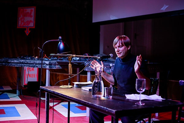 *1984 im ruhrgebiet, lebt in berlin. schriftsteller, bildender künstler und sänger der gruppe messer. außerdem dozent für kreatives schreiben und gelegentlich kurator. als freier journalist schreibt er sporadisch über musik.