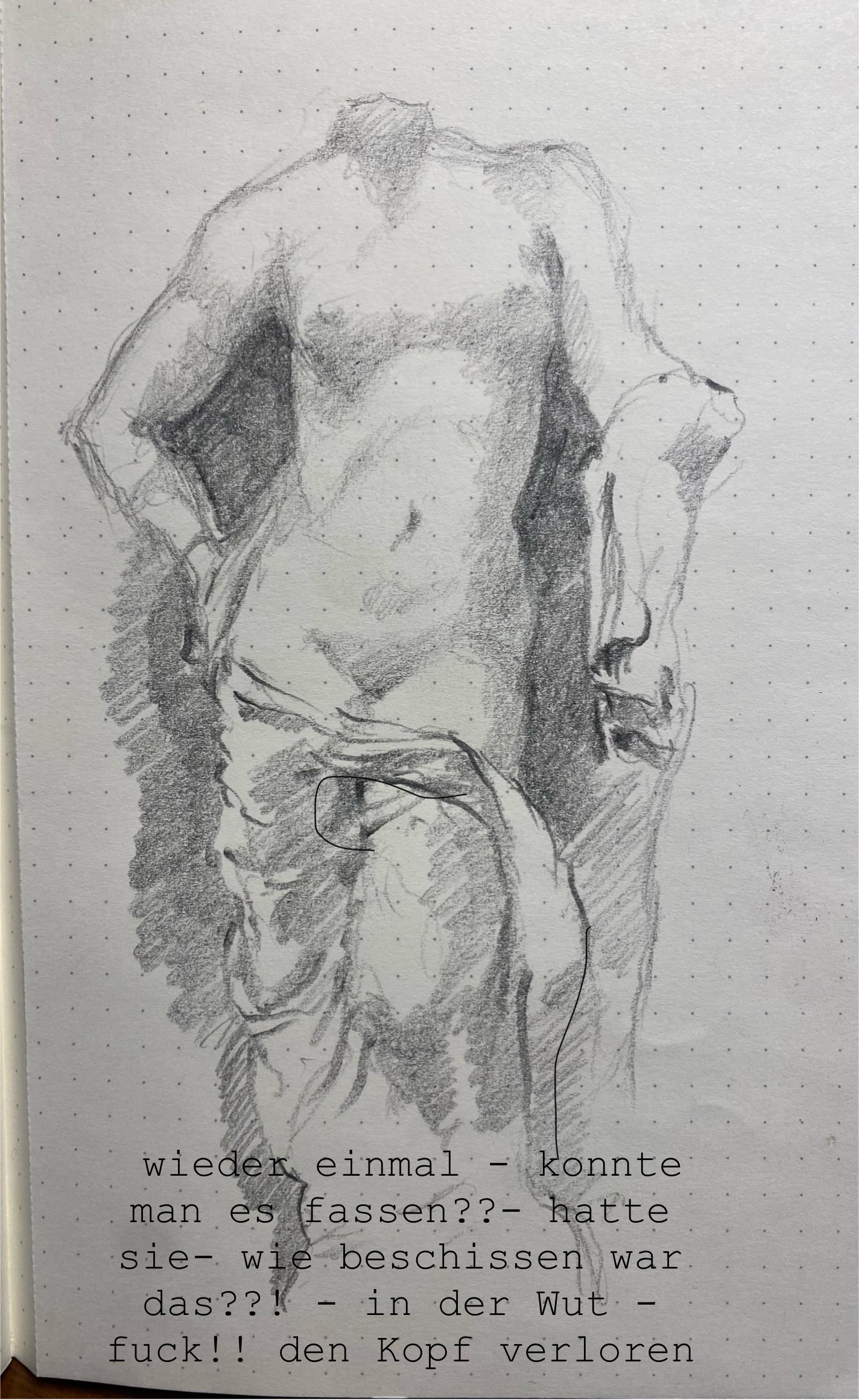 Ein tolles Beispiel dafür, dass Medienkombinationen die Möglichkeit bieten, erzählerische Brüche zu erzeugen. In vorliegendem Beispiel entsteht durch den beigefügten Text ein Comic Relief-Moment. Dieser wiederum kann nur entstehen, weil die Darstellung der Statue das kulturelle Gedächtnis an sich und damit verbundene normative Praktiken über Kunst zu sprechen abruft. Mit dieser Normativität wird hier gespielt, well done.
